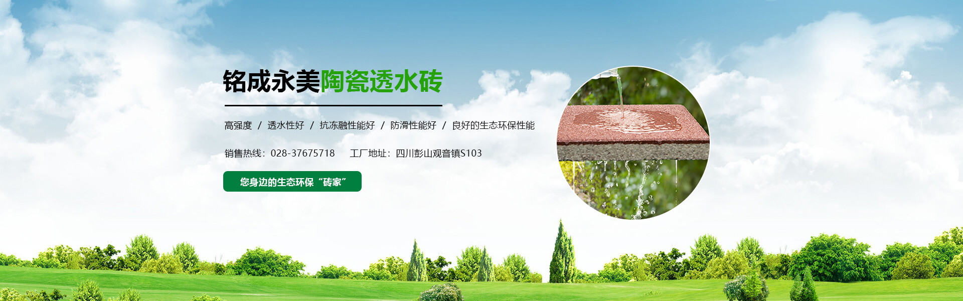 四川銘成永美環保科技有限公司(www_mcotcn_com.umong.com.cn)是國內非常早研究探索海綿城市的企業之一,公司主導產品:海綿城市鋪路磚家---銘成永美生態陶瓷透水磚已在全國多個重點項目使用。公司透水混凝土、雨水收集利用系統正在全國推廣。公司將整合海綿城市規劃設計、污水處理、污泥利用、環保設備、社會資本等海綿城市相關產業。為解決城市“熱島效應”、地表硬化,防止城市內澇,營造高質量的自然生態環境,改善城市生態平衡而不斷努力!公司將充分利用現有的互聯網資訊平臺,整合生態海綿城市產業鏈,打造集互聯網、科研、生產、銷售、規劃設計、PPP項目營運、工程施工為一體的綜合性環保科技公司,已初步建立覆蓋全國的業務團隊和渠道。